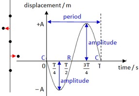 1.3 a যান্ত্রিক কম্পনের গ্রাফিকাল উপস্থাপনাঃ পরীক্ষাগারে আমরা একটি মাইক্রোফোন থেকে প্রাপ্ত অসিলোস্কোপে ট্রেসগুলি অধ্যয়ন করতে পারি যা একটি টিউনিং কাঁটার কাছে স্থাপন করা হয়, একটি নরম হাতুড়ি দ্বারা আঘাত করা হয়, যা শব্দের সহজতম রূপ তৈরি করে। সময় স্কেলের সঠিক পছন্দের সাথে, অসিলোস্কোপ ট্রেস একটি মসৃণ সাইনাস লাইন, একটি সঠিক এবং সুনির্দিষ্ট পুনরাবৃত্তি সময় সহ। এই ধরনের বক্ররেখা ধ্বনিবিজ্ঞানে অত্যন্ত গুরুত্বপূর্ণ এবং সাইনোসয়েড নামে পরিচিত।