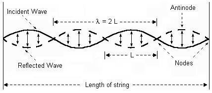 একটি স্ট্রিং যন্ত্রের মধ্যে প্রসারিত স্ট্রিংটি ছিঁড়ে, আঘাত করে বা বাঁক দিয়ে যান্ত্রিক তরঙ্গ তৈরি করা যেতে পারে। স্ট্রিংয়ের প্রান্তগুলি স্থির করা হয়েছে, তরঙ্গের প্রতিফলন ঘটে যখন এটি এই সীমানার সাথে মিলিত হয়। আপতিত এবং প্রতিফলিত তরঙ্গগুলি সুপারপজিশন এবং নিম্নলিখিত প্যাটার্নের ফলাফল দ্বারা একে অপরের সাথে হস্তক্ষেপ করে।