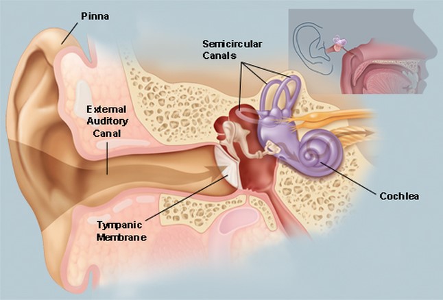 3.6 a বর্ণনাঃ মানুষের কান তিনটি অংশ নিয়ে গঠিত-বাইরের কান, মধ্য কান এবং ভিতরের কান। চিত্র. 3.2]। বাইরের কানটি দৃশ্যমান পিন্না নিয়ে গঠিত এবং কানের খাল, একটি বায়ু ভর্তি নল, কানের ড্রামে শেষ হয়, যা শব্দের প্রতিক্রিয়ায় কম্পন করে। এই কানের ড্রামের বাইরে রয়েছে মাঝের কান, যা বাতাসেও ভরা থাকে, এর মধ্যে রয়েছে টাইম্পানিক গহ্বর এবং তিনটি ছোট হাড় যা শ্রবণ অসিকেলস নামে পরিচিত-ম্যালিয়াস, ইনকাস এবং স্ট্যাপাস। এই হাড়গুলি কানের পর্দা থেকে ডিম্বাকৃতি জানালার ঝিল্লিতে কম্পন প্রেরণ করে, যা মধ্য কানকে ভিতরের কান থেকে পৃথক করে। তরল ভর্তি অভ্যন্তরীণ কানে অটোলিথ অঙ্গ রয়েছে-ইউট্রিকল এবং স্যাকিউল এবং ভেস্টিবুলার সিস্টেমের অন্তর্গত অর্ধবৃত্তাকার খালগুলির পাশাপাশি কোক্লিয়া, যা শ্রবণের জন্য সংবেদনশীল রিসেপ্টর ধারণ করে। অর্গান কর্টিতে চুলের কোষ থাকে যা শব্দ কম্পন এবং অন্যান্য কাঠামোর প্রতিক্রিয়ায় স্নায়ু সংকেতের জন্ম দেয় যা চলাচল এবং মাথার ভারসাম্য নিয়ন্ত্রণ করে। মস্তিষ্ক এই সমস্ত সিস্টেম থেকে তথ্য গ্রহণ করে, ব্যাখ্যা করে এবং প্রক্রিয়া করে।